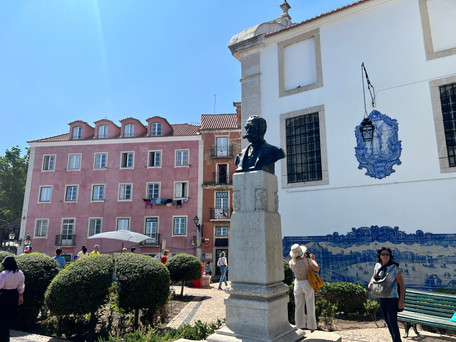 I continued to walk towards what I thought may be downtown, and I finally found it. First was the waterfront, surrounded by this massive, yellow palace. There's a bridge across the bay that looks like the Golden Gate Bridge, too! I stayed there for a few minutes, and when I saw the Portuguese flags waving in the wind, I remember getting so excited. It reminded me where I was and how cool it was that I was here. How, despite never having been here before, I somehow felt so comfortable and calm.